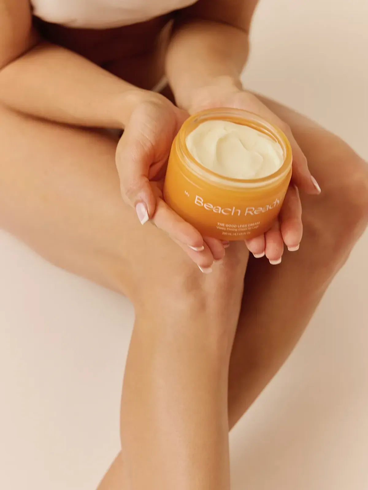 • My Beach Ready Life products are designed to work together. With consistent use, you can expect smoother-feeling skin, improved texture, and legs that look more refined and nourished. The Good Legs Exfoliant should be used as the first step in the routine to gently buff away dullness, and followed by The Good Legs Cream to hydrate and visibly firm the look of the skin. However, because everybody’s skin is different individual results may vary.